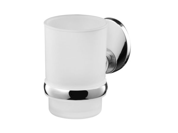 Стакан із тримачем BISK Emotion 03104 – стильний аксесуар для ванної кімнати. Виготовлений із міцного цинкоалюмінієвого сплаву з хромованим покриттям і матового загартованого скла. Кріплення можливе за допомогою гвинтів. Компактний, елегантний і зручний у використанні.