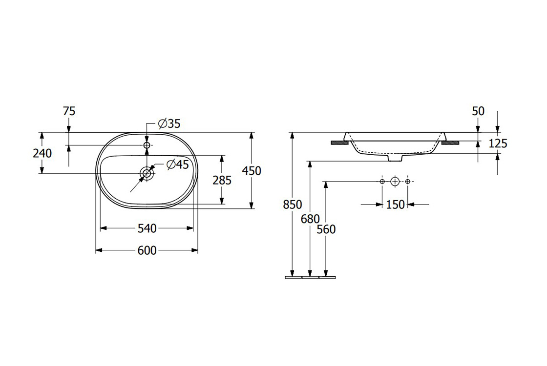 Умивальник ARCHITECTURA (5A666001) врізний на стільницю овальний, характеризується компактністю та ідеально поєднюється з меблями для ванної кімнати. Виготовлений зі сантехнічної кераміки високої якості та міцності в кольорі White Alpin (білий). З переливом