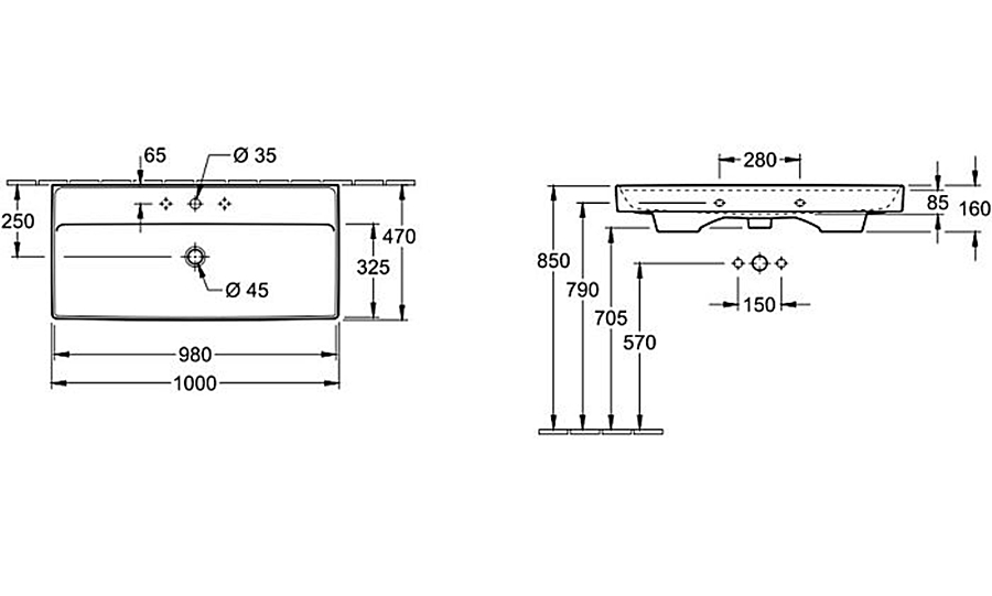 Відгуки про "COLLARO Умивальник без переливу 1000х470 мм Titan Ceram (4A33A2R1)"