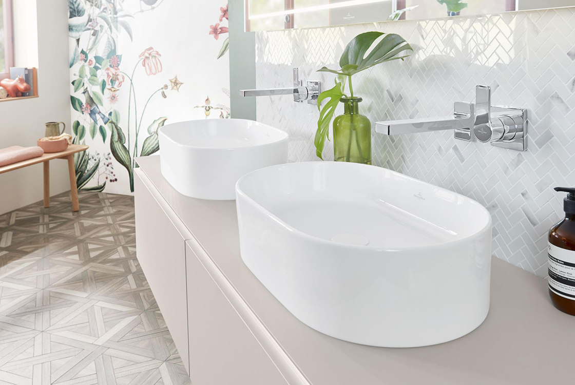Умивальники Collaro з тонкими стінками та стильними краями виготовлений з високоякісного матеріалу TitanCeram, що дозволяє створювати унікальні філігранні форми в дизайні виробів для ванної кімнати. Інноваційна технологія очищення кераміки CeramicPlus створює брудовідштовхуючий ефект з поверхні сантехнічної кераміки, що значно полегшує прибирання ванної кімнати.