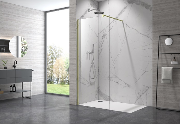 Відгуки про "Душова перегородка Armaform RIO GRANDE Brushed gold 90х200 см. Walk-in, алюм. профіль 10мм., скло 8мм 113-40633"