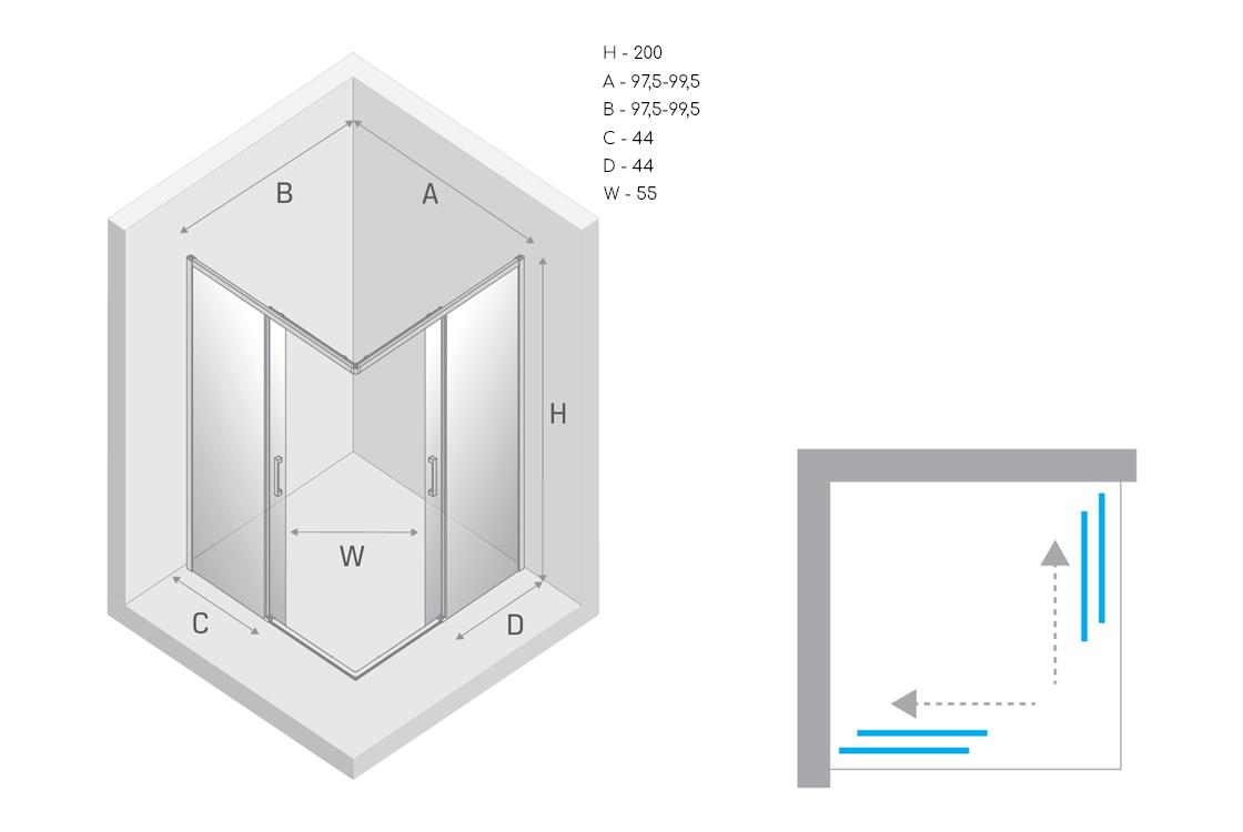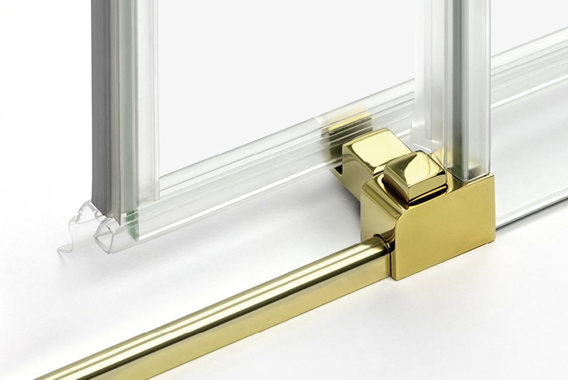 Модель Prime Light Gold оснащена розсувною системою, яка забезпечує плавне відкриття дверей. Профільна система кріплення, безпечне загартоване прозоре скло товщиною 6 мм із захисним покриттям Active Shield 2.0. Вертикальні ручки.