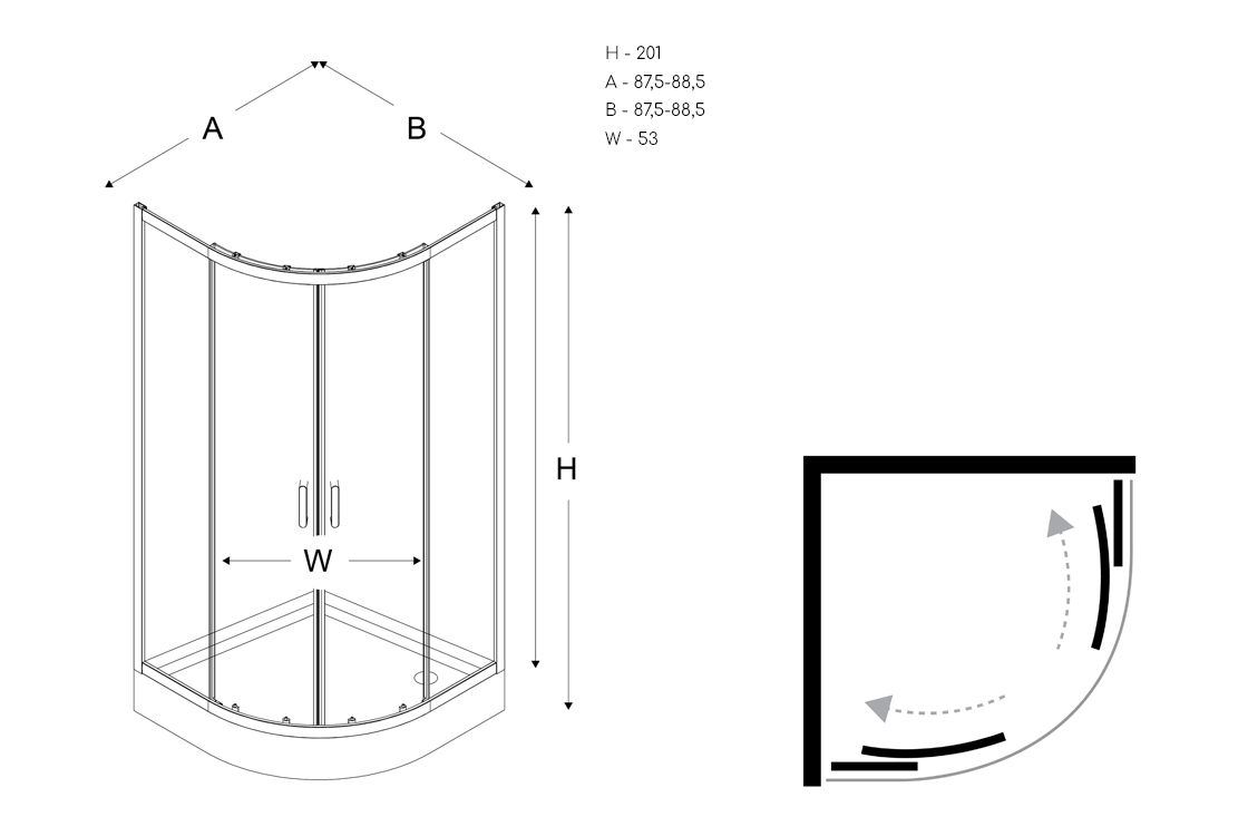 Модель Suvia оснащена розсувною системою, яка забезпечує плавне відкриття дверей. Безпечне загартоване прозоре скло товщиною 5 мм. Профільна система монтажу перегородки являє собою класичний спосіб примикання скла до стіни за допомогою алюмінієвого профілю. Вертикальні хромовані ручки. Комплектується низьким піддоном 16 cм.