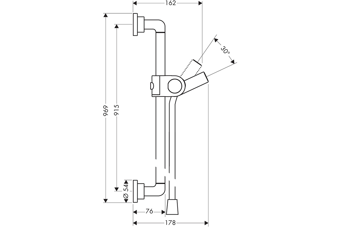 складається з: душова штанга, душовий шланг, повзунокповоротний з'єднувач запобігає заплутуванню шлангадовжина труби: 969 ммдіаметр душової штанги: 25 ммпрофільна труба: кругламеталевий тримач для ручного душатримач ручного душа з механізмом блокуваннястінові опори металеві