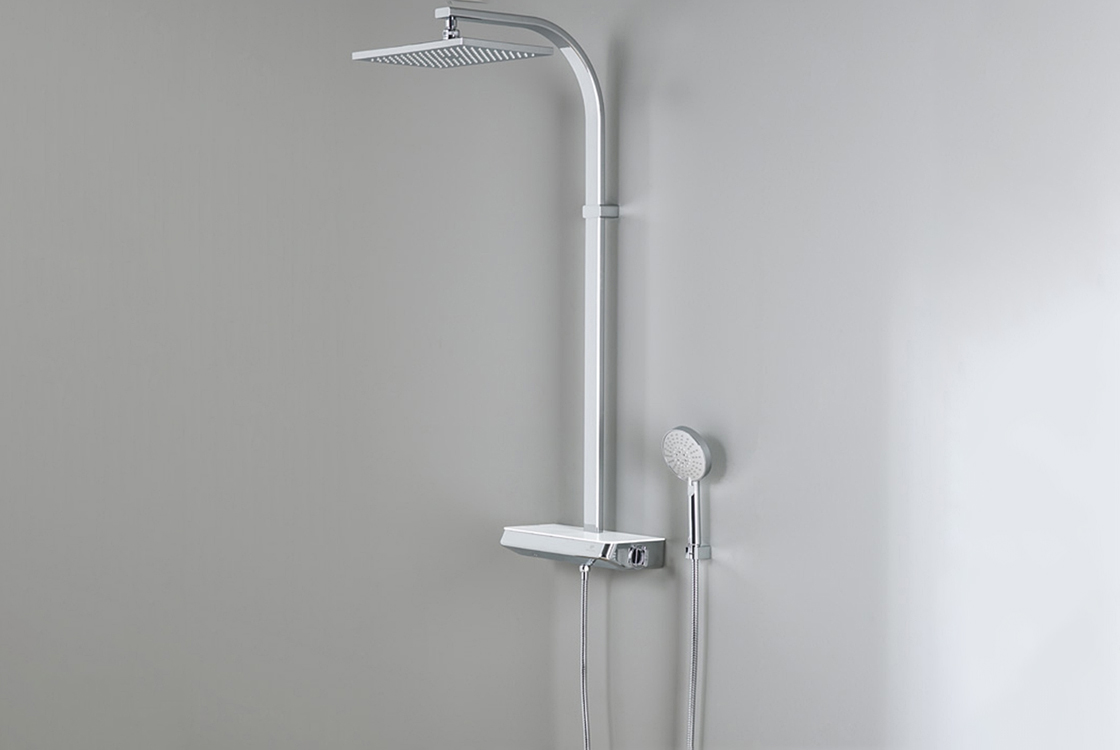 Душова система складається зі змішувача з термостатом, верхнього душу, ручного душу "JOY", штанги, шланга, полиці KRION®. З'єднання 1/2 "і відстань між ними 150 мм. Він включає зворотний клапан і запобіжник на 38º. Швидкість потоку при 3 барах ручного душe становить 8,7 л/хв, а душової лійки 8,9 л/хв.