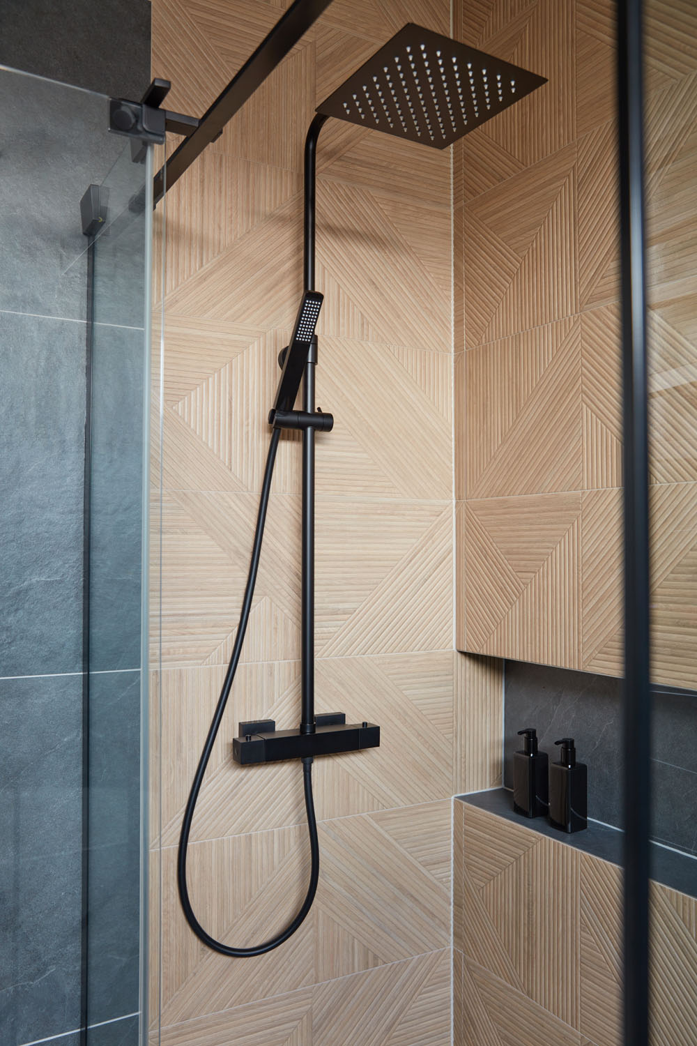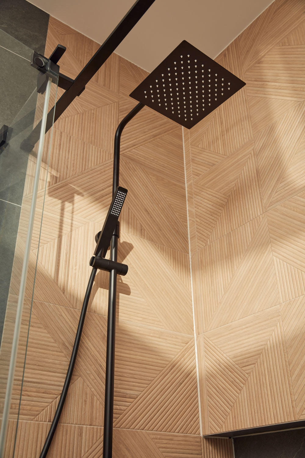 Дизайн всього виробу послідовний - квадратний диск верхнього душу ідеально поєднується з кубічною формою термостатичного змішувача. Важливо, що форма ручок – це не тільки зовнішній вигляд, це ще й ергономічність: ми впевнені, що вона не вислизне з мокрих рук. Вбудований перемикач душу обладнано обмежувачем для комфортного використання вибраного режиму - ручний душ або верхній душ.