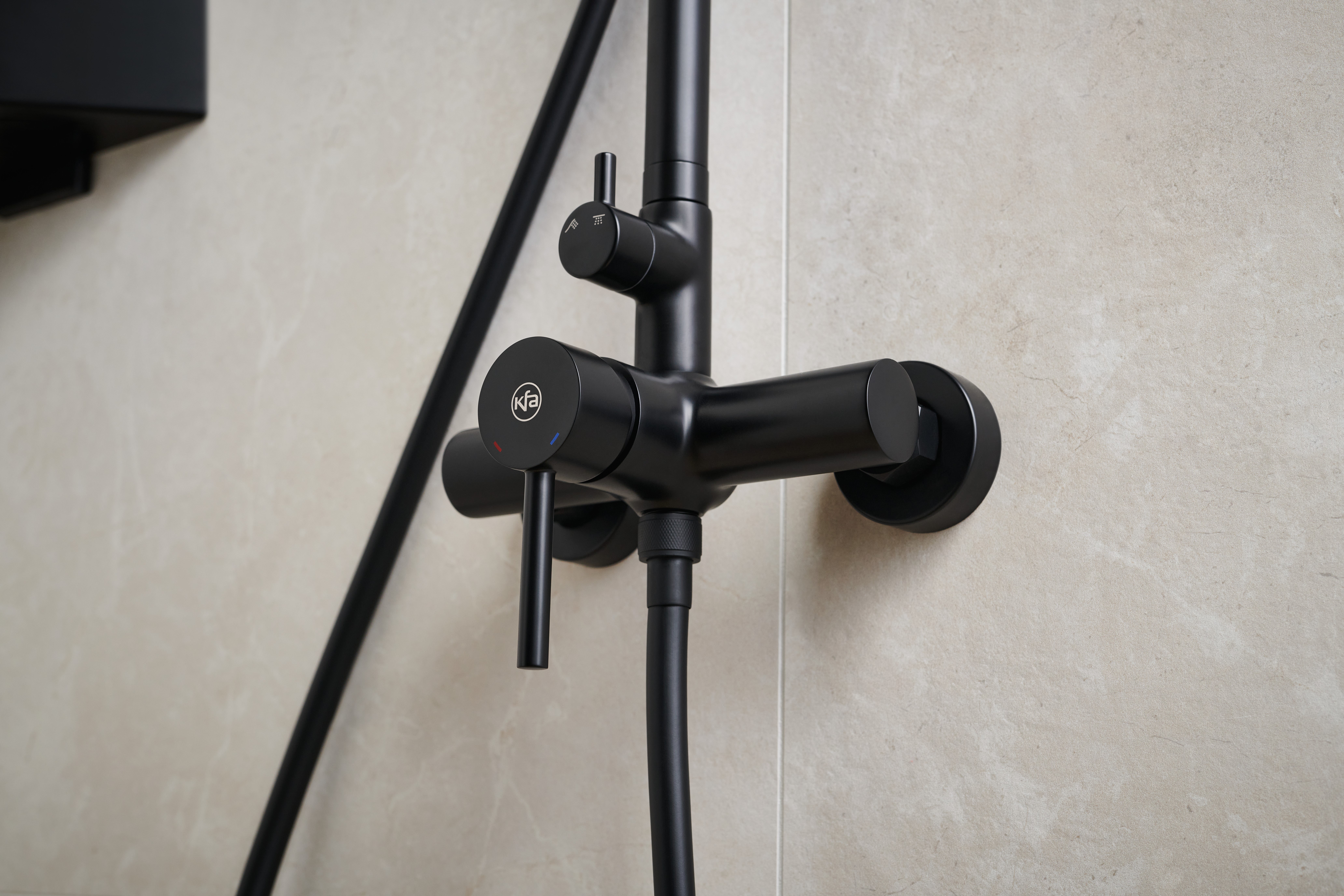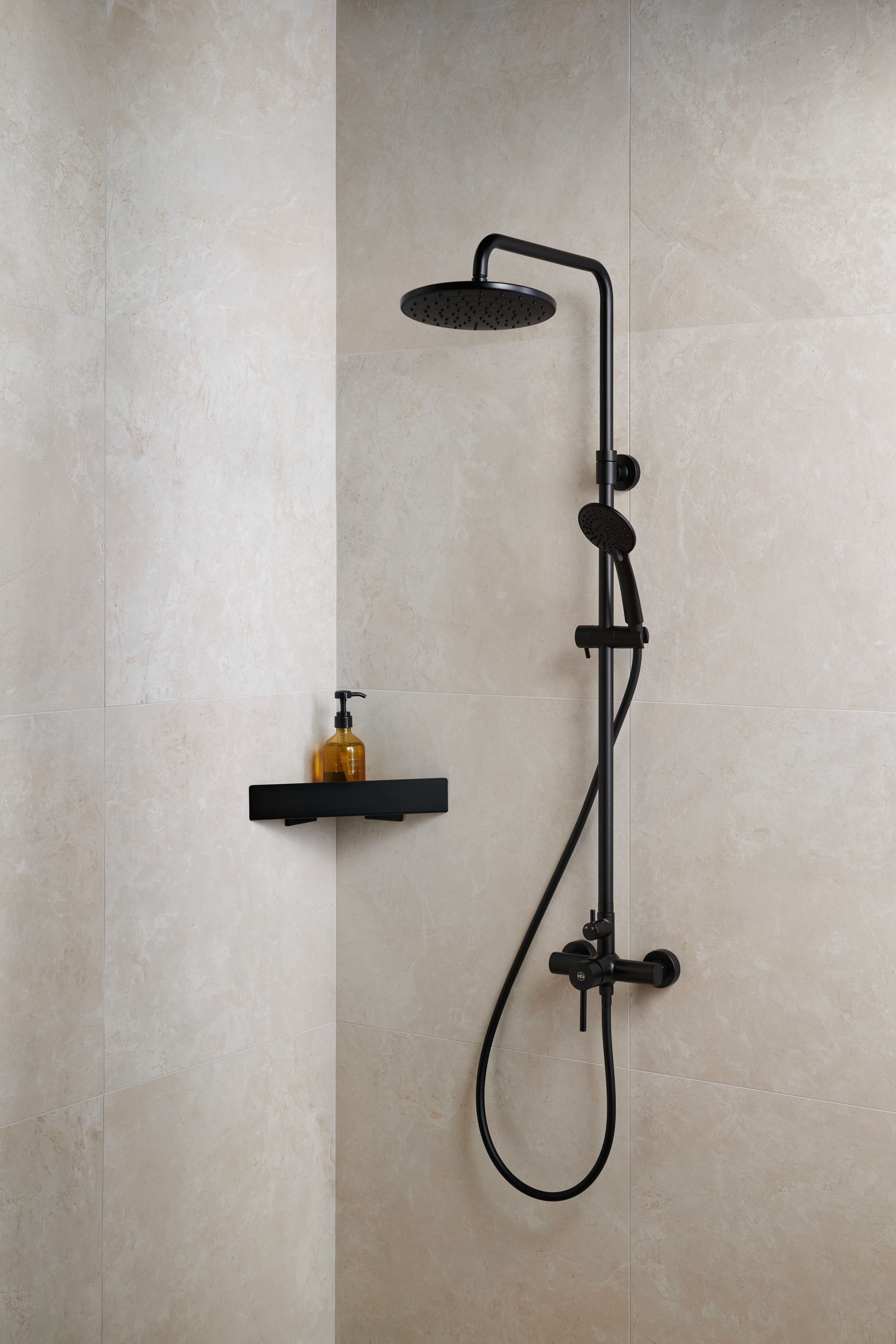 Зовнішній вигляд привертає увагу своїми чорними акцентами й матовою поверхнею, яка додає елегантності до вашої ванної кімнати. Вона ідеально поєднується з різними стилями інтер'єру. Ця система має різні функціональні можливості. Має регульований душовий змішувач, який допоможе вам вибрати потрібну температуру води та інтенсивність потоку.