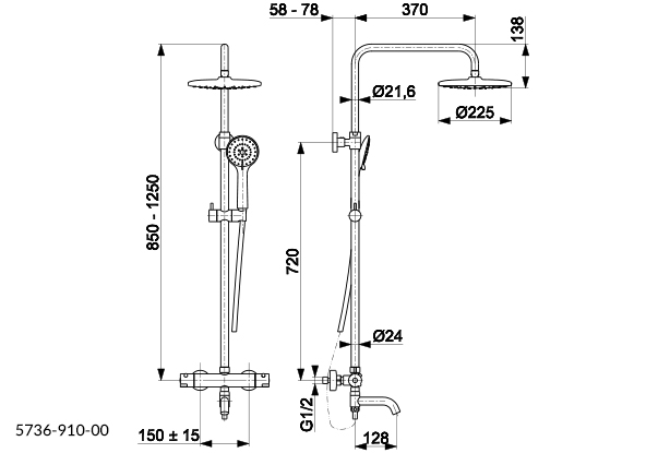 - регульована по висоті лійка ручного душу,