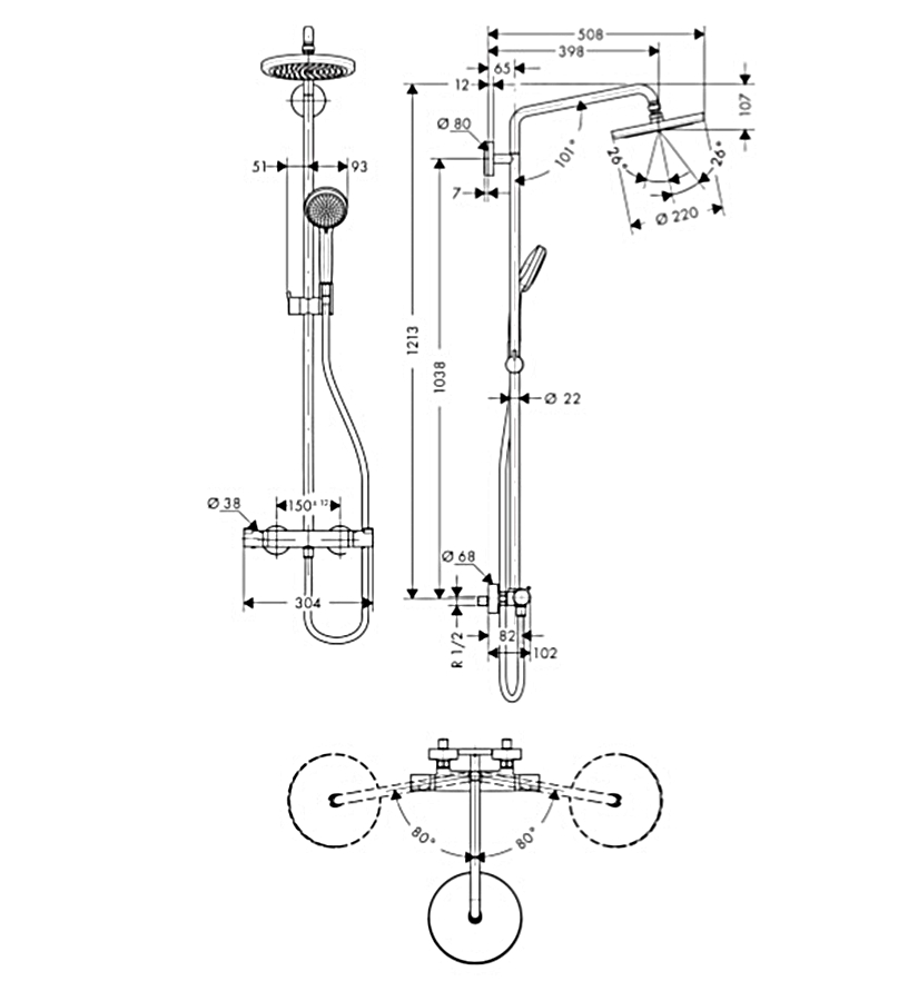 Відгуки про "Душова система Croma Air 220 1jet Showerpipe EcoSmart з термостатом та поворотним тримачем 400м хромовані (27188000)"