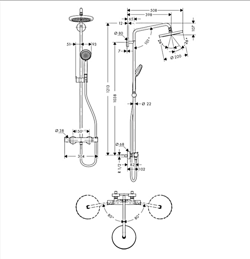 Відгуки про "Душова система Croma Air 220 1jet Showerpipe з термостатом та поворотним тримачем 400м хромовані (27185000)"