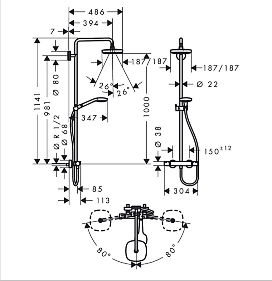 Відгуки про "Душова система Croma Select E 180 2jet Showerpipe EcoSmart з термостатом: 9 л/хв, білий/хромований (27257400)"