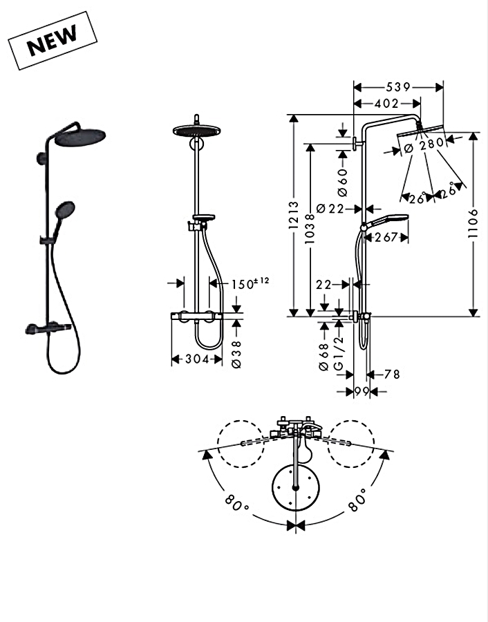 Відгуки про "Душова система Croma Select S 280 1jet Showerpipe з термостатом Matt White (26890700)"