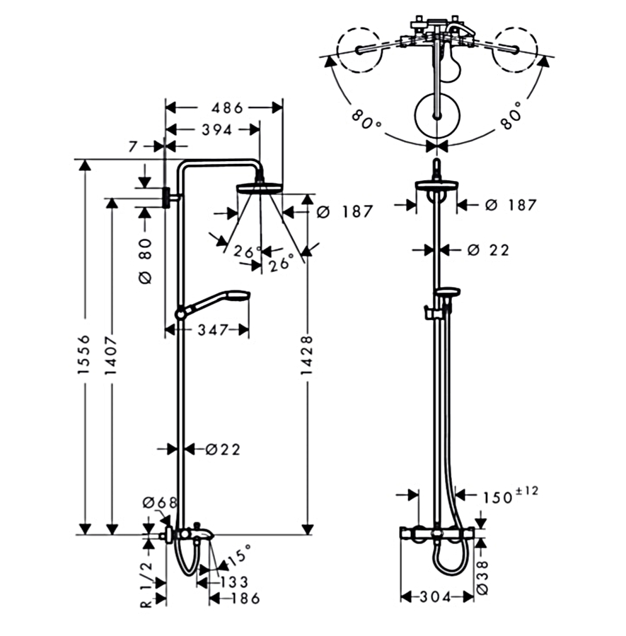 Відгуки про "Душова система Croma Select S Showerpipe 180 2jet з термостатом для ванни, білий/хром (27351400)"
