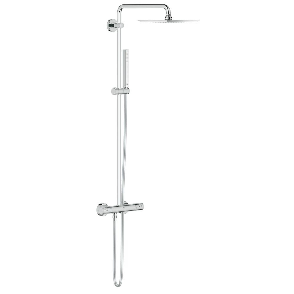 Душова система Grohe Euphoria XXL System 230 (26187000) - складається з вертикальної стійки, всередині якої розташований канал доставляє воду до душової насадки. Система оснащена термостатом який економить воду, електроенергію і підтримує температуру на заданому рівні на всьому протязі купання.