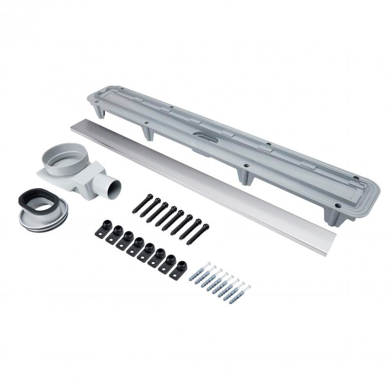 - комплектація: душовою канал - 1 шт, сифон - 1 шт, решітка для волосся 1 шт, універсальна двостороння накладка з нержавіючої сталі 1 шт, гідроізоляційні стрічки 4 шт, монтажний набір для кріплення регульованих ніжок: шуруп D 3,5x35мм - 8 шт., дюбель 6х35 мм - 8 шт, регульовані ніжки - 8 шт