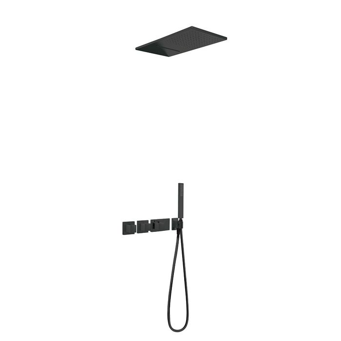 Душовий комплект Tres Block System з термостатом, верхнім та ручним душем, 3 режими, чорний матовий (20725302NM)