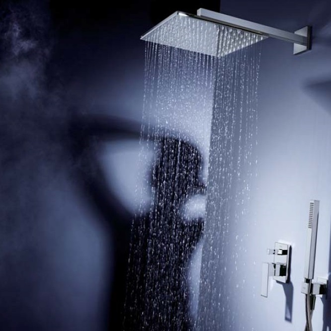 Душовий комплект, Tres Cuadro-Tres, хром (106980) - система з одноважільним вбудованим змішувачем з затвором і регулятором потоку.