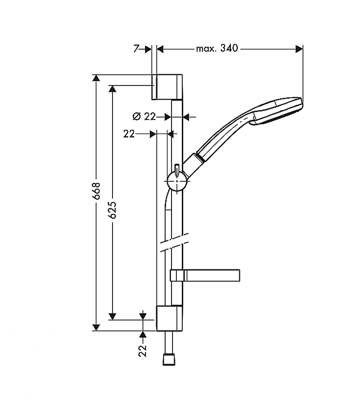 HANSGROHE Душовий набір зі штангою 65 см і ручним душем 10 см з трьома типами струменя.