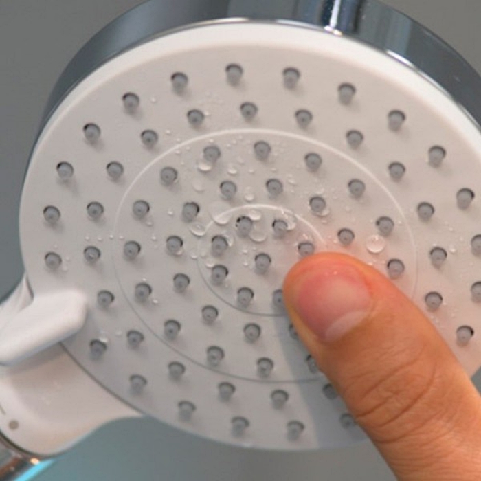 2 типи струменів: Rain, IntenseRain. Струмені перемикаються за допомогою обертового душового диска. Перекручуванню шланга запобігає шарнірний підшипник з боку душу. Кут нахилу змінюється до 45°. Максимальні витрати води при 3 бар: 14 л/хв. Настінні кріплення хромовані, виготовлені з пластику.