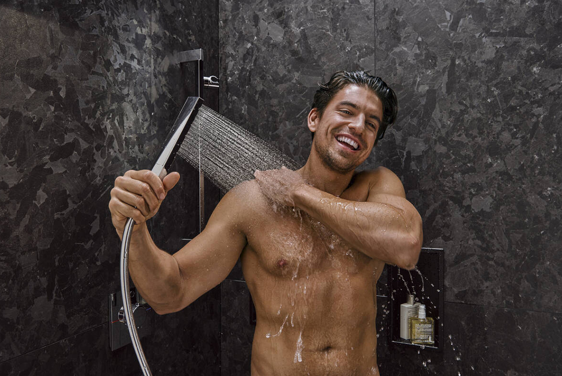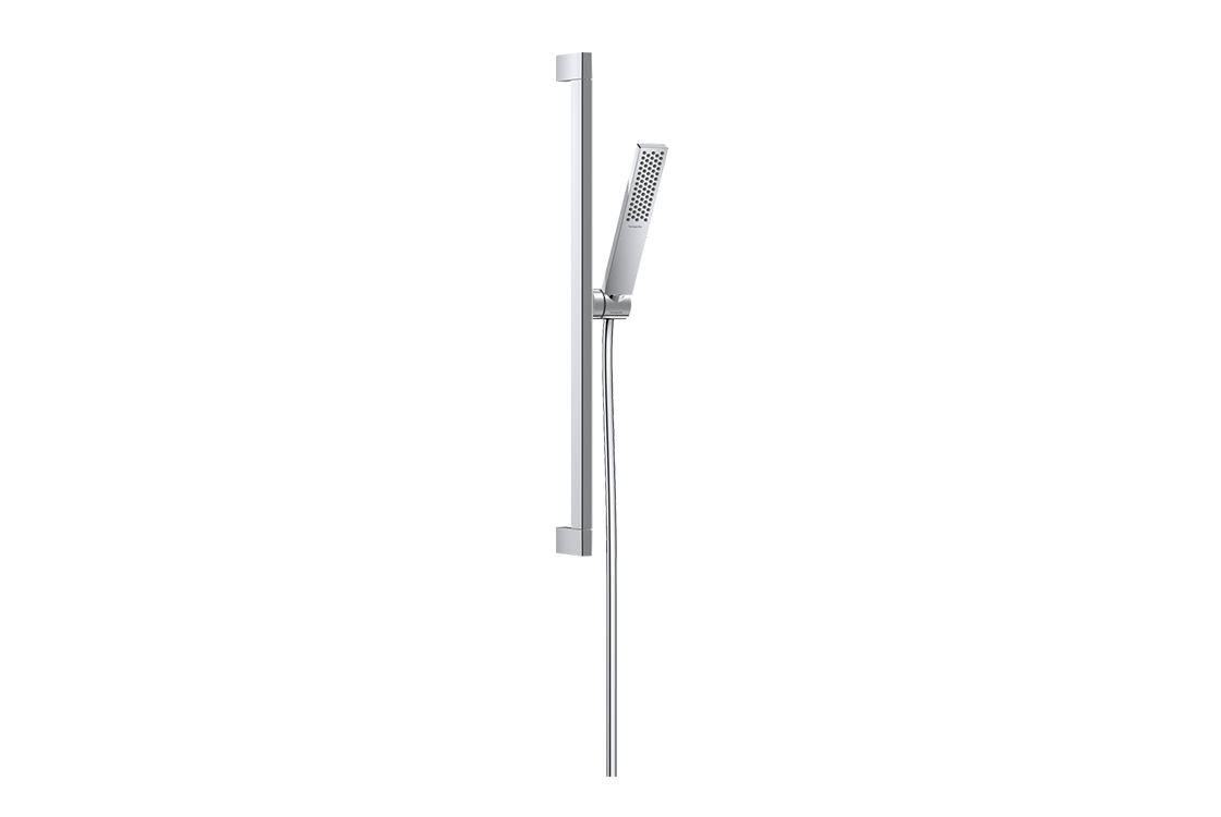 HANSGROHE складається з: душової штанги, душової лійки, душового шланга, тримача для душу,розмір душової лійки: 100х25 мм,тип розпилення: PowderRain,максимальна витрата при 3 барах: 5 л/хв,мінімальний тиск потоку: 0,9 бар,душовий шланг з конусною гайкою на обох кінцях,поворотний з'єднувач запобігає заплутуванню шланга,настінний монтаж: гвинтове кріплення,настінні опори з пластику,тримач ручного душу для правого та лівого встановлення,металевий тримач для ручного душу,довжина труби: 663 мм,профільна труба: куб,відстань свердління 627 мм,технологія EcoSmart+ (економне використання води).