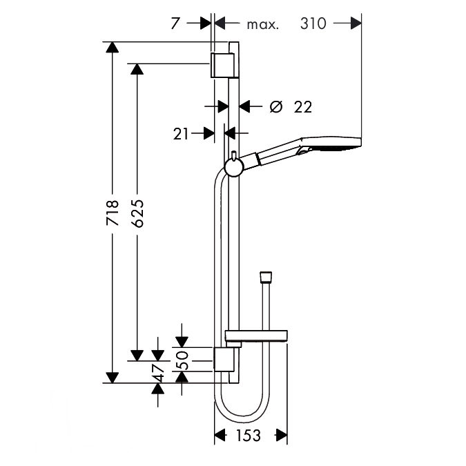 HANSGROHE Душовий набір зі штангою 65 см і ручним душем 12 см з трьома типами струменя
