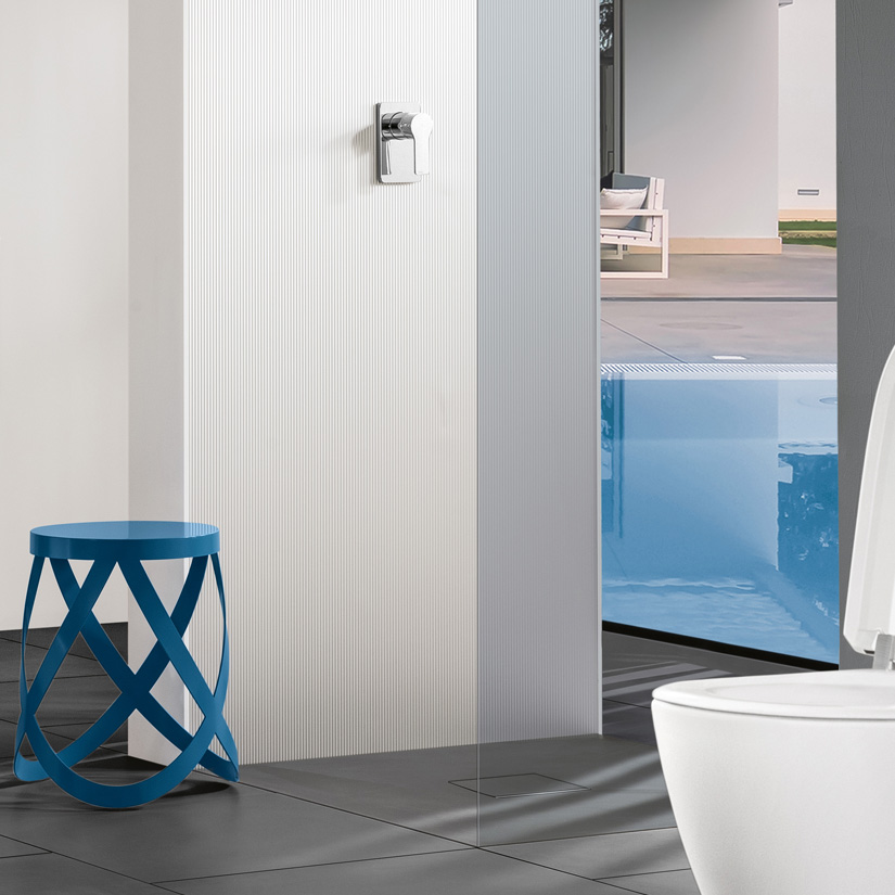 Ці душові піддони не є розрізаними і можуть використовуватися для всіх типів установки (вбудовується урівень з підлогою, на плитку, на цоколь). Кришка зливу у відповідному матовому кольорі з хромованою накладкою.