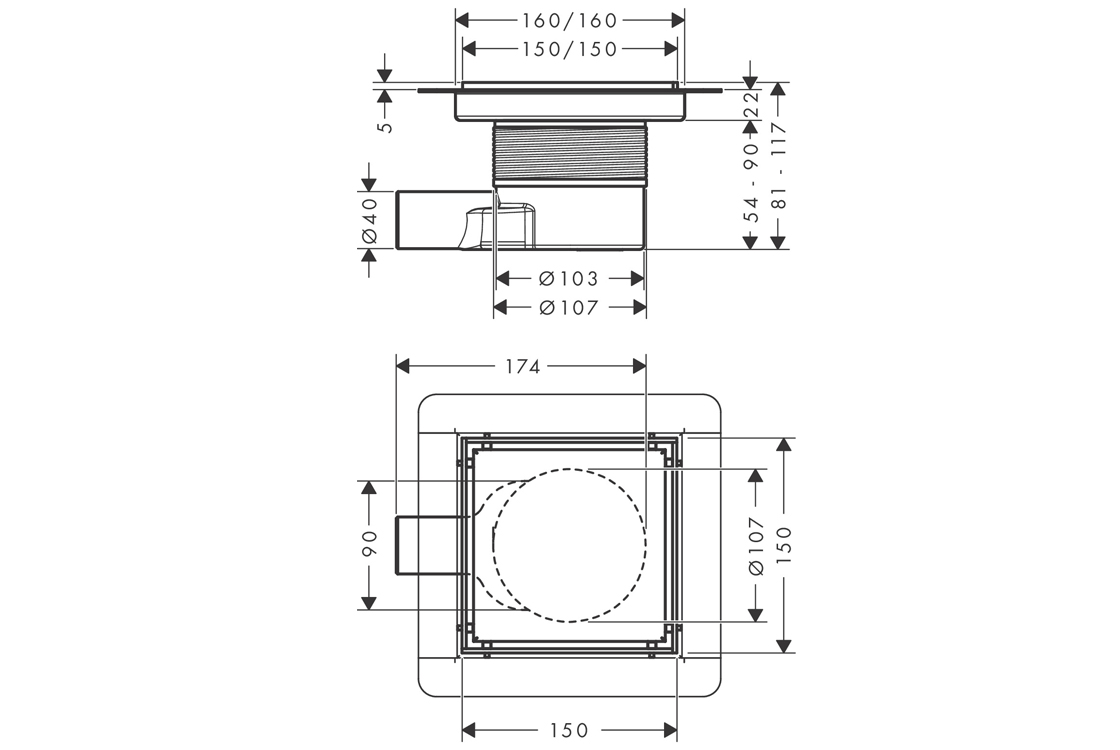 Душовий трап точковий "RainDrain Brilliance" 150х150х5 мм d40, Brushed Stainless Steel (56251800)