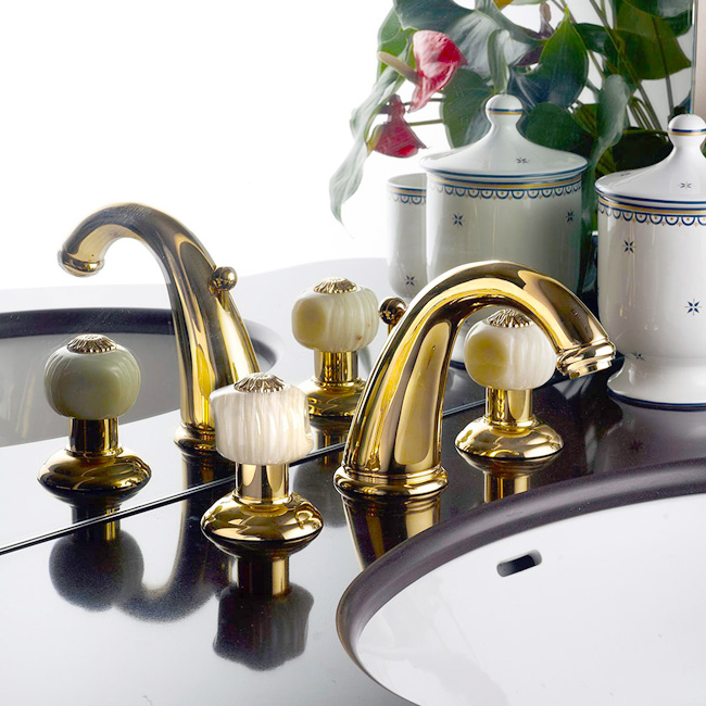 Колекція двохвентильних змішувачів Onice виготовлена з ручками з натурального каменю Онікса з елегантною огранюванням. Онікс, камінь, який є різновидом агата, він має ніжний зелений з ніжними прожилками і переливами, прекрасно поєднується з металом різних відтінків.