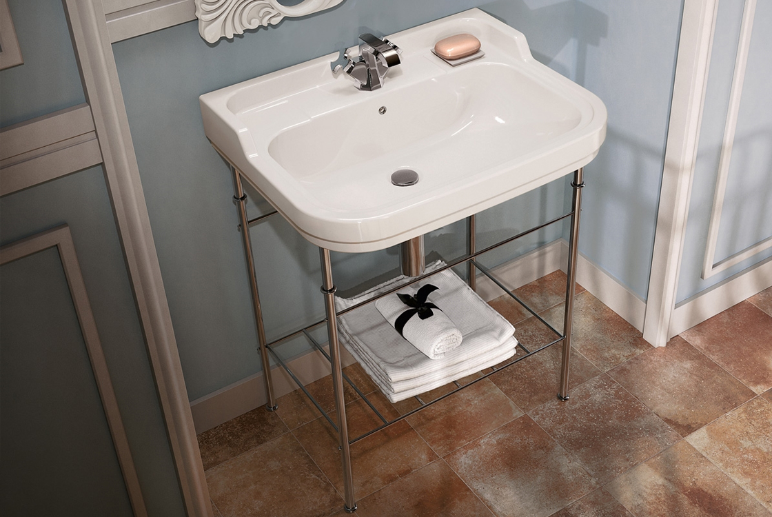 Умивальник комплектується з постаментом, консоллю або монтується на стіну (підвісний).