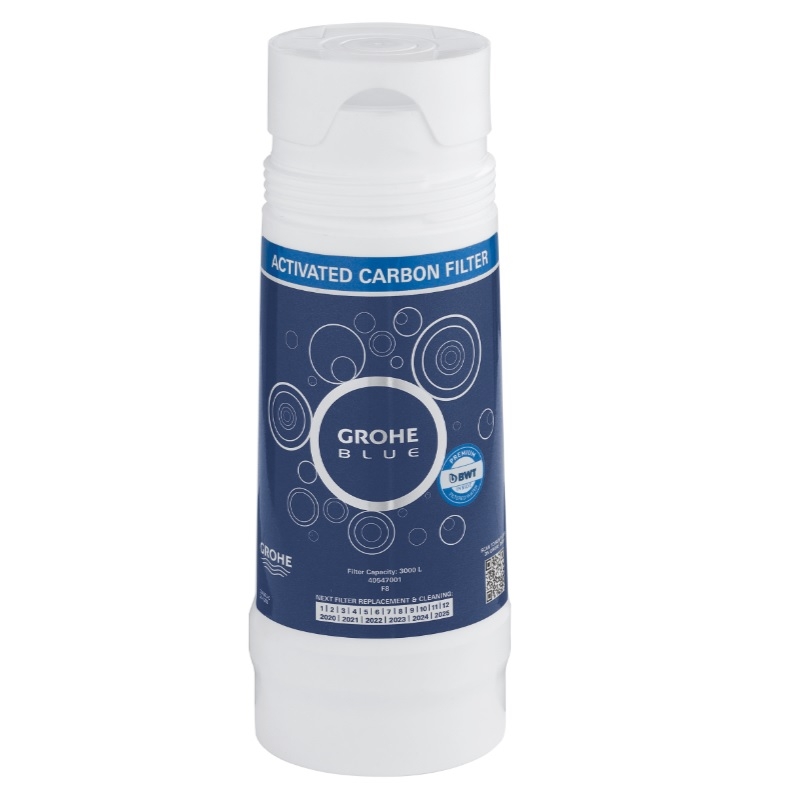 Фільтр для Grohe Blue (40547001) з активованим вугіллям - чистота і смак для регіонів з м'якою водою. Освіжаюча і смачна вода гарантована! У цьому принадність системи GROHE Blue і фільтра з активованим вугіллям GROHE Blue, який спроектований для регіонів з жорсткістю води менше 9 ° dKH. Розумний триступеневий фільтр, ємність якого становить 3000 літра, видаляє всі небажані елементи і домішки. Великі частинки, такі як бруд, видаляються на першому етапі. Фільтрація активованим вугіллям очищає смак води. І, нарешті, тонка фільтрація видаляє найдрібніші частинки. Замінити фільтр легко: просто відкрутіть старий фільтр, вставте очищуючий картридж, запустіть процес очищення і потім замініть його новим фільтром.