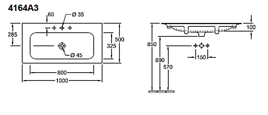 Відгуки про "FINION Умивальник меблевий 1000x500 мм прямокутний без отвору та без переливу (4164A3R1)"