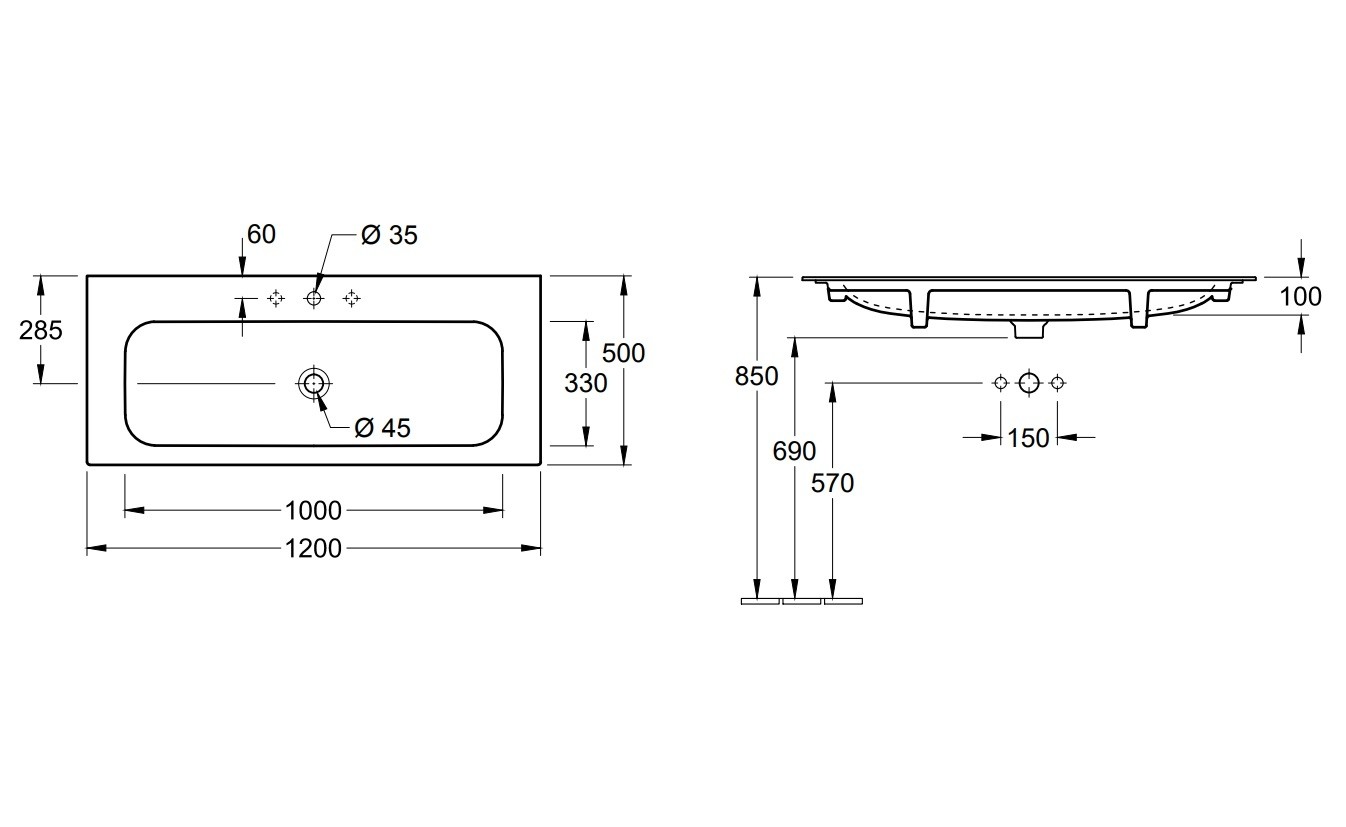 Відгуки про "FINION Умивальник меблевий 1200x500 мм прямокутний без отвору під змішувач, без переливу (4164C3R1)"