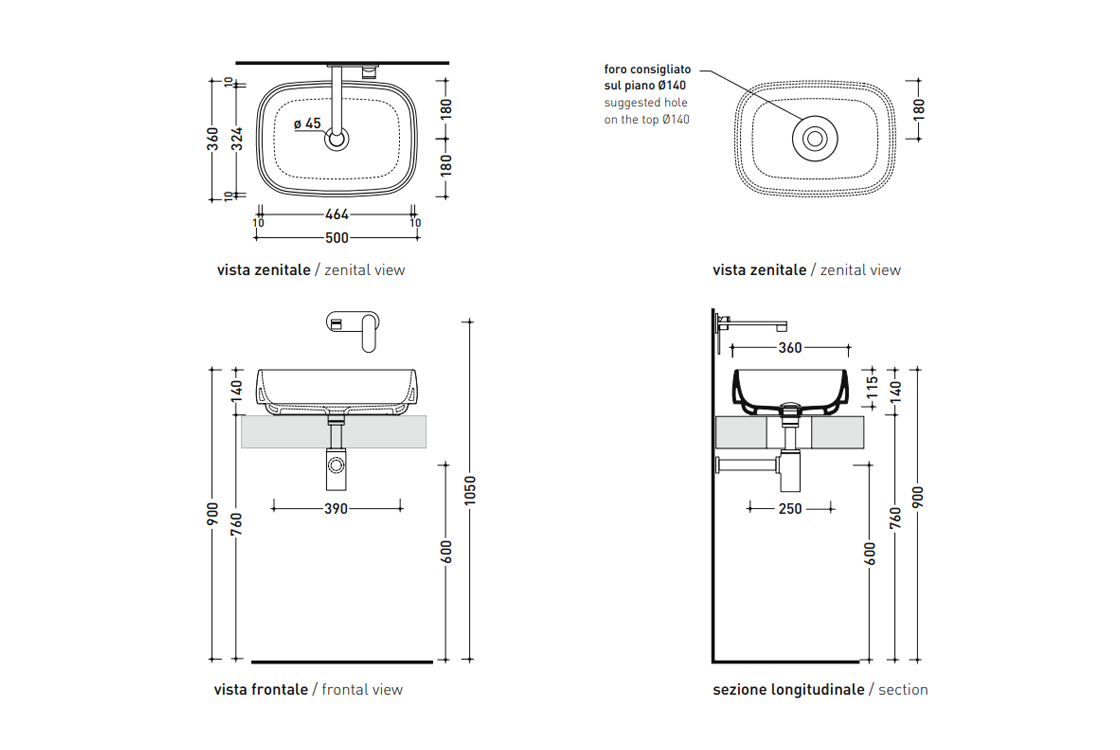 FLAG 50 Умивальник прямокутний накладний 50х36 Latte (FG50A)