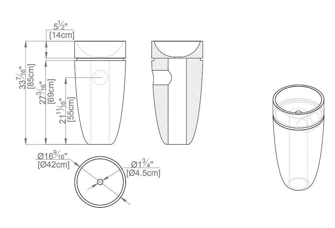 Матеріал: натуральний камінь з матовою поверхнею. Розміри: ширина і глибина 42 см, висота 85 см