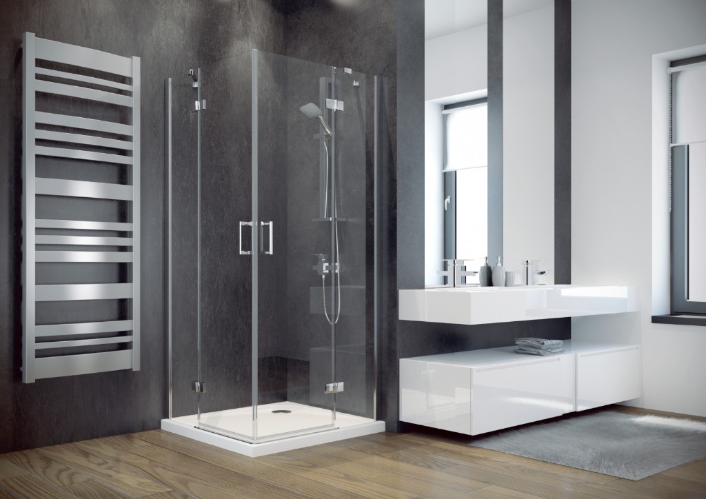 Безпечне гартоване скло, товщиною 8 мм. Профіль, шарніри, кронштейн xромовані блискучі. Кабіна підходить до нерівних стін. Магнітна прокладка в дверях. Bодостоковий жолоб зливає воду всередину кабіни. Ширина входу: 80.3 см.