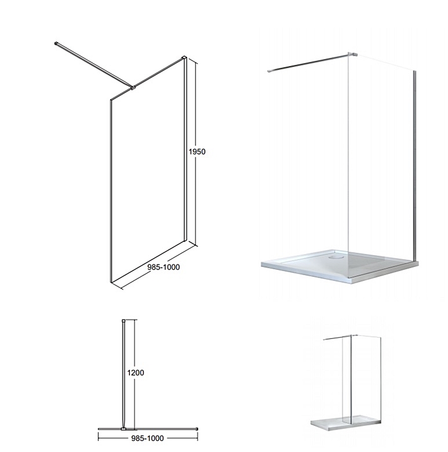 Відгуки про "Кабіна walk in AVEO 100x195: скло прозоре, тримачі хромовані 120 см"
