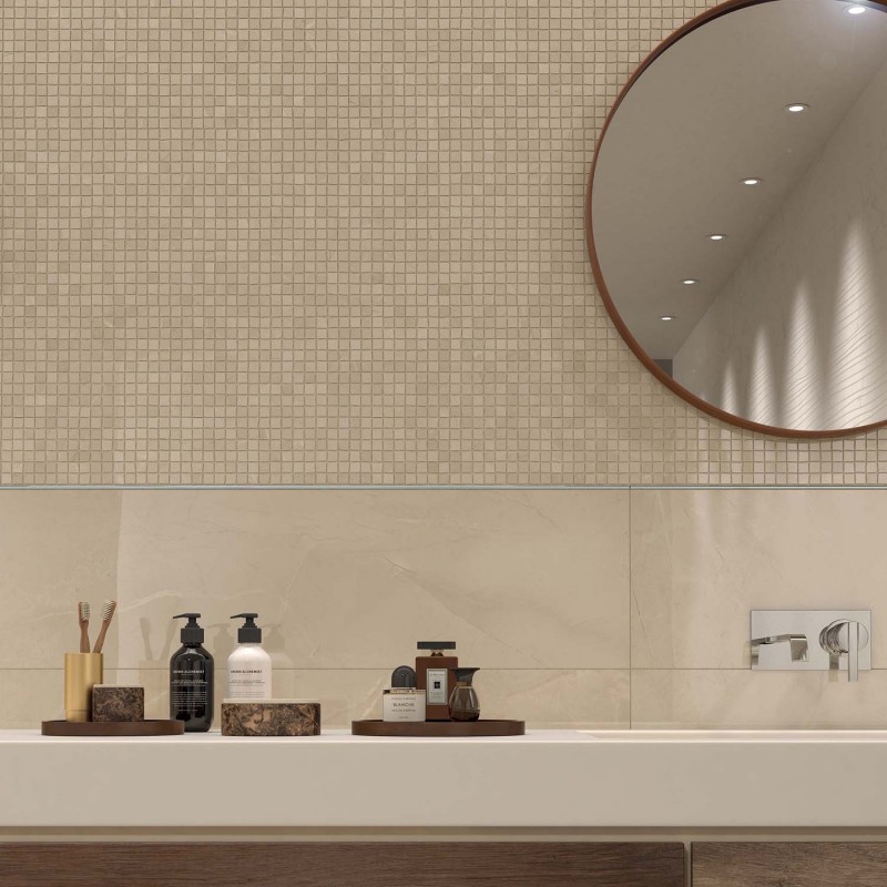 Колекції ABK для підлоги та стін, а також великі узгоджені модульні плити створюють відчуття безперервності між підлогою та стінами, а також між внутрішніми і зовнішніми просторами в житлових і торгових приміщеннях, таких як велнес, бізнес, Ho.Re.Ca і харчова промисловість.