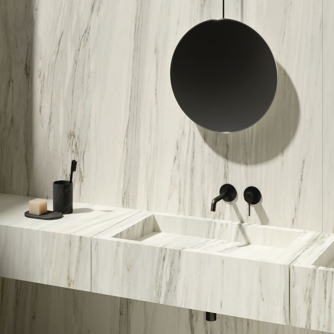Керамограніт Ariostea Ultra Marmi пропонує дизайнерам додаткову можливість використання продукту зі справжньою керамічною основою, яка, завдяки зменшеній ширині на 6 мм, залишається маневреної завдяки простій людській силі. Може бути, що більш важливо, це додає унікальності величної висоті цих матеріалів: стандартний розмір - 150 см. Завдяки цьому продукт вигідно відрізняється від інших продукти на ринку і не має собі рівних з точки зору його безшовного застосування на меблях, підлогах і стінах.