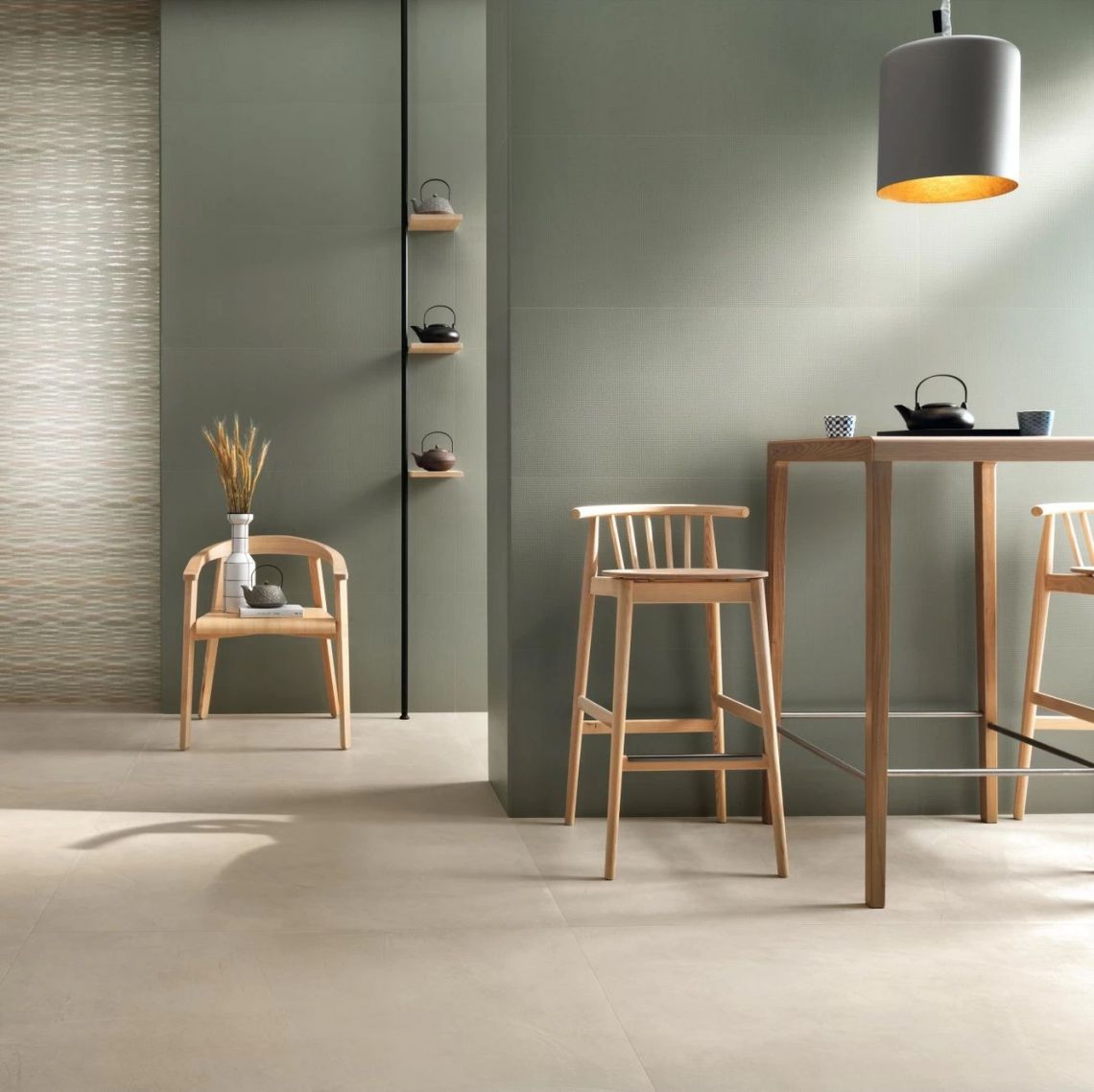 Керамограніт Aplomb - це колекція плитки з ефектом шпалер. Вона прекрасно підійде для ванних кімнат, а також для кухонь і магазинів, в яких створить по-сучасному стильну і спокійну атмосферу. Пилові непомітні тони колекції широко використовуються в інтер'єрного дизайну і легко поєднуються з іншими елементами обстановки. У фактурах Minidots і Stripes, створених з тонко блискучого матеріалу, дрібні точки або тонкі лінії м'яко виступають, тон в тон, на приглушеному матовому тлі.