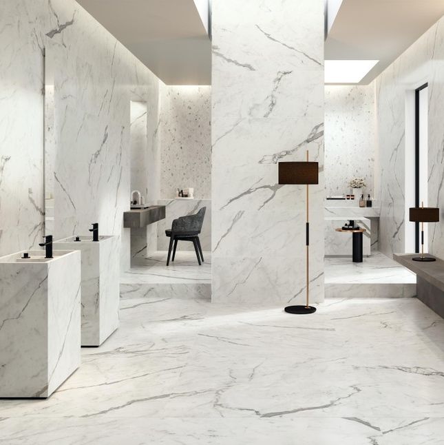 Керамограніт Marvel Shine розширює асортимент плитки під мармур Atlas Concorde новими малюнками: чотири цінні сорти білого мармуру, тісно пов'язаних з італійськими монументальними традиціями, відтворені на плитках з чудовим реалізмом. Красу фактури мармуру з її чистими квітами і натуральними прожилками доповнюють високі технічні характеристики кераміки, що дозволяє укладати плитку колекції як на стіни, так і на підлоги. Проект включає підлоговий керамограніт і настінну плитку з білої глини, якими будь-який інтер'єр можна оформити цілісно, елегантно і вишукано.