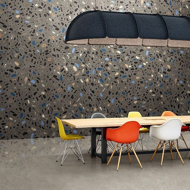 Варіант «терраццо» з тонким або товщим фоном, з можливістю поєднання великих і малих розмірів для створення надзвичайно сучасного вигляду з потужним декоративним чарівністю.
