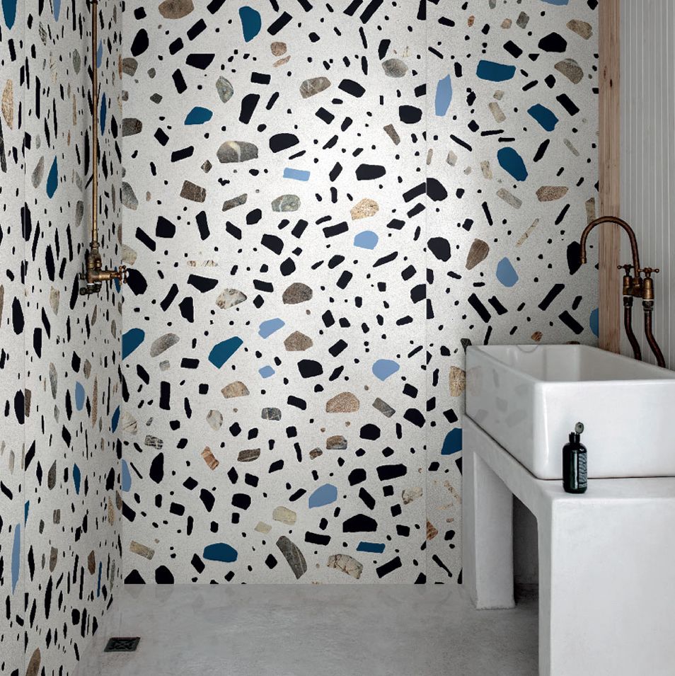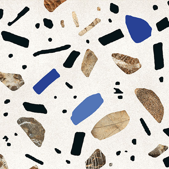 Варіант «терраццо» з тонким або товщим фоном, з можливістю поєднання великих і малих розмірів для створення надзвичайно сучасного вигляду з потужним декоративним чарівністю.