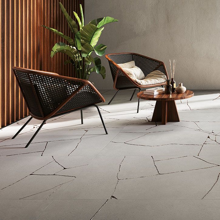 Керамограніт Kintsugi це чудово мінливі, вишукані елементи, типові для японської культури, відкривають нові діалоги для сучасних житлових приміщень. Мистецтво перекомпонування - це тонкий, символічний урок, запропонований древнім мистецтвом кінцугі, інтерпретованим Фьоранезе на плитках з ефектом бетону, які поєднуються з яскравим світінням металу і готові до створення привабливою нетрадиційної обстановки.