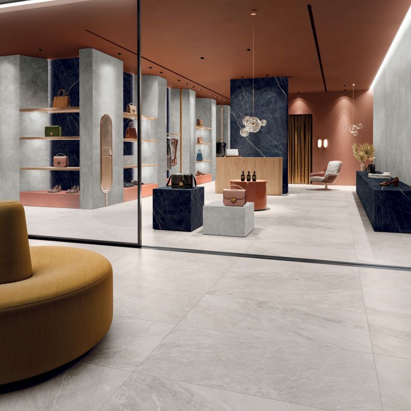 Колекція Blue Savoy переосмислює тверду елегантність і динамічний ефект оригінального каменю в діапазоні 4 різних кольорів, задуманих як складна сіра шкала, від найяскравішого до самого інтенсивного, переходячи через більш активні і трохи більш теплі відтінки. Граючи з різними ефектами поверхні, від самих декоративних текстур до нековзною обробки для вологих і вуличних приміщень, Blue Savoy - це проект, який, завдяки широкому вибору розмірів, поміщає ефект каменю як, ідеальний продукт для всіх стилів і для будь-якого передбачуваного використання.