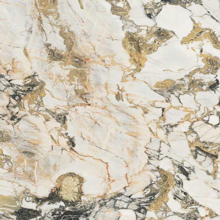 Керамограніт Étoile de Rex пропонує м'які та сяючі поверхні, які нагадують нам пишність минулих років. Колекція представляє добірку унікальних і рідкісних порід мармуру, що походять з географічних місць, дуже віддалених один від одного і має яскравий декоративний ефект. Від Тоскано-Еміліанських Апеннін із дивовижними відтінками бежевого та кольору слонової кістки мармуру Cremo Delicato до магнетичних зелено-синіх тонів бразильського амазоніту (Amazzonite).