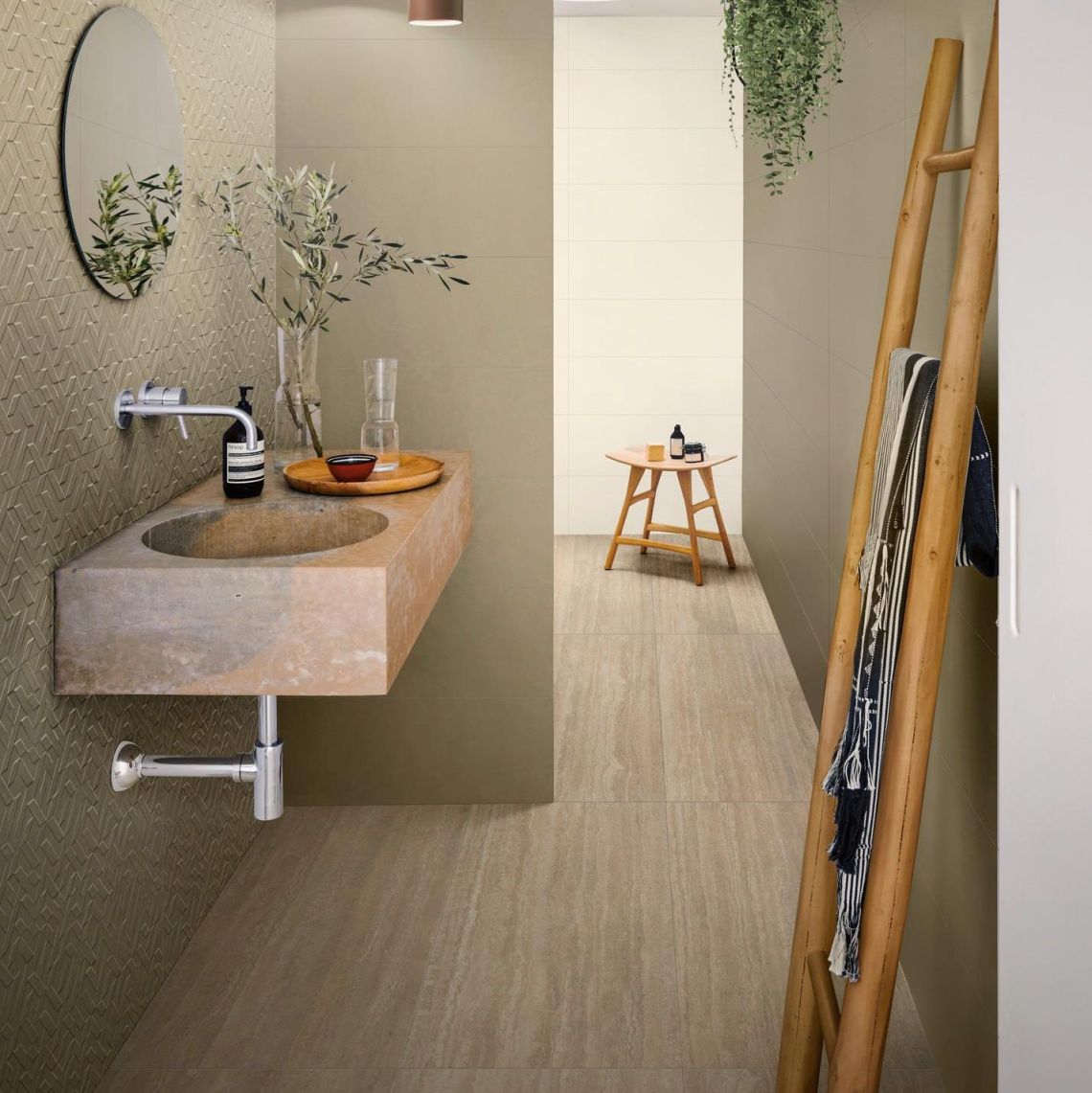 Керамограніт Mystone Travertino - Classico, Navona і Silver: три кольори - світло-бежевий, світло-сірий і кремовий - поєднуються з трьома малюнками, що відтворюють різні на вигляд і на дотик камені, з двома варіантами декору - Classic і Botanic. Три мозаїки та чотири розміри – 90x180, 60x60, 60x120 та 30x60 см – ідеально підходять для зіставлення та контрасту між кольорами та геометричними ефектами, що покривають підлогу та стіни сучасних елегантних просторів. Дві обробки, одна м'якша і тепліша, а інша більш глянсова і витончена, підкреслюють виразний потенціал мармуру, відкриваючи нові можливості дизайну для класичних матеріалів.