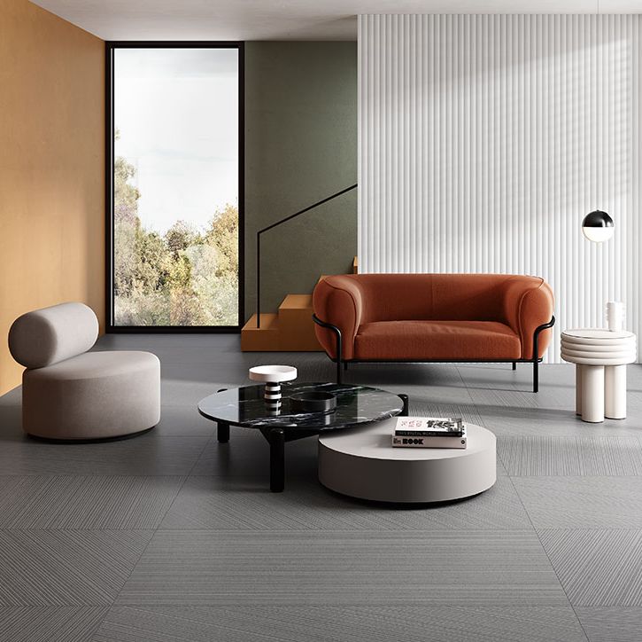 Керамограніт Tweed Stone ми досліджували красу і силу лавового каменю, і його мінливі структури, що перетинаються нюансами кольору, сформували фон для інноваційних підлог всередині приміщень. Ми доповнили його природні вібрації м'якою тканиною.