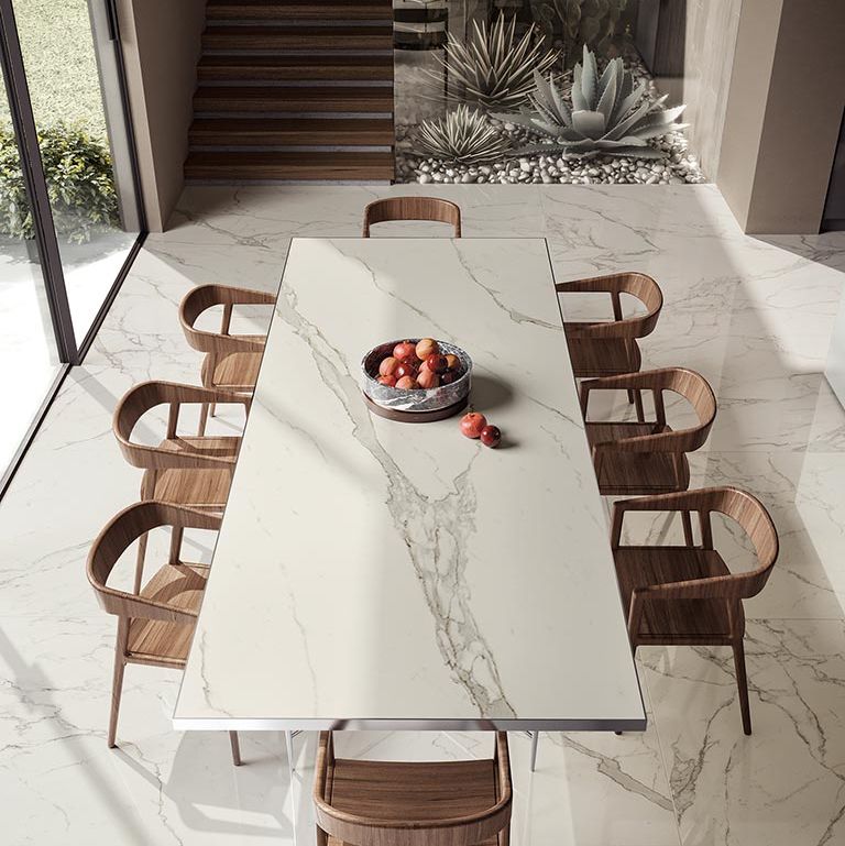 Natura-Vein ™ Tech відтворює ефект натурального мармуру. Малюнок вен проходить по всій товщині плитки, гарантуючи ідеальну взаємозв'язок візерунка на поверхні і по всій товщині плитки. Ця ексклюзивна технологія може використовуватися з плиткою Atlas Plan товщиною 20 мм і 12 мм. В нашій плитці, як і в натуральному мармурі, малюнок вен в товщині матеріалу повторює малюнок на поверхні, тому візерунок на плитці Atlas Plan формується випадковим чином.