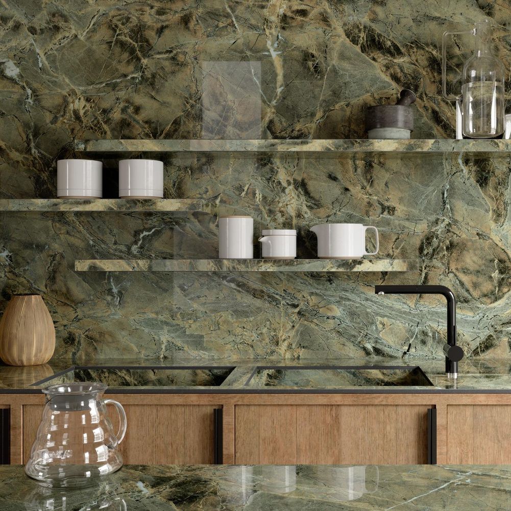 Особливості керамогранітної плити для стільниць Marazzi Grande Marble Look Verde Borgogna Satin W/Mesh 162х324 12 мм (MAMX)