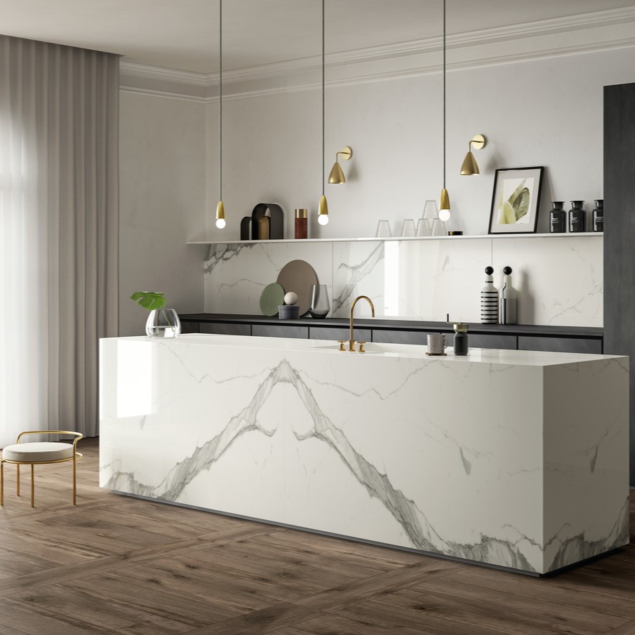 Відгуки про "Керамогранітна плита для стільниць Sapien Stone Calacatta Statuario 4d Cashmere 320х160 12mm (SSC3216507G)"